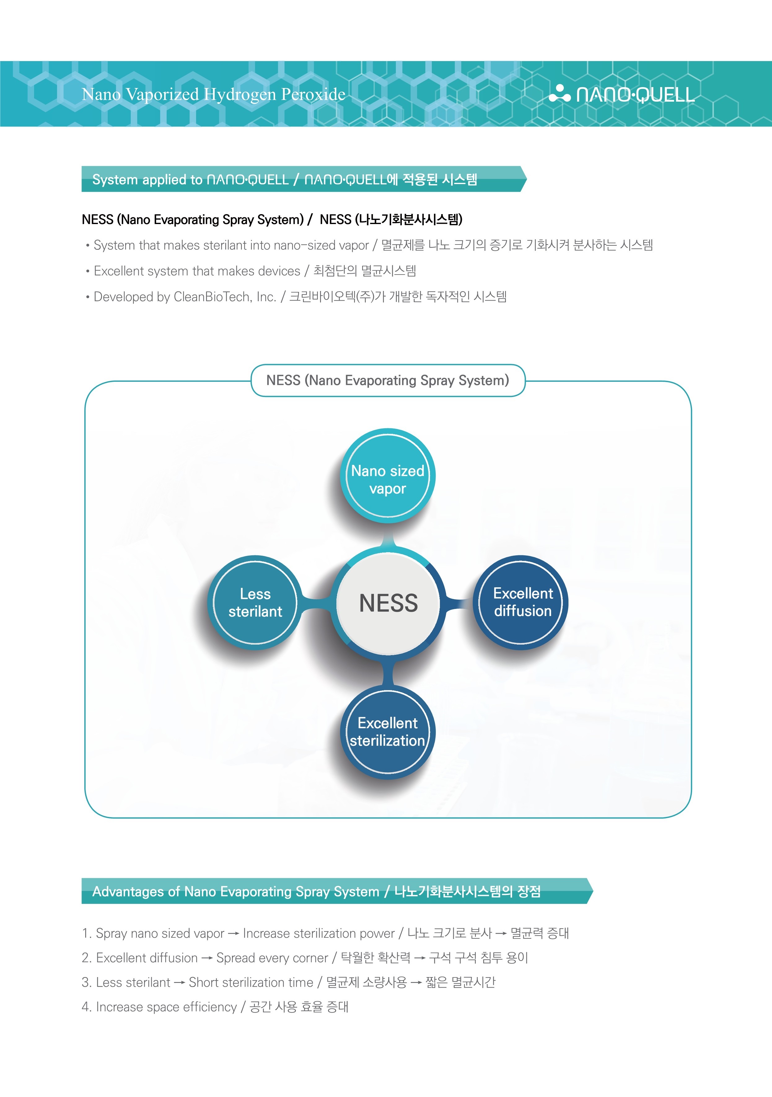 | 기술 | Nano Evaporating Spray System | H₂O₂센서 | O |